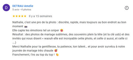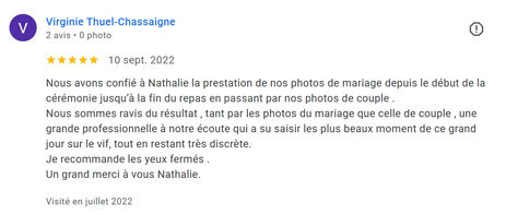 Ces mots sincères de mes clients sont ma plus grande récompense. Je suis déterminée à continuer à offrir un service de qualité et à capturer des moments mémorables pour chacun de mes clients.